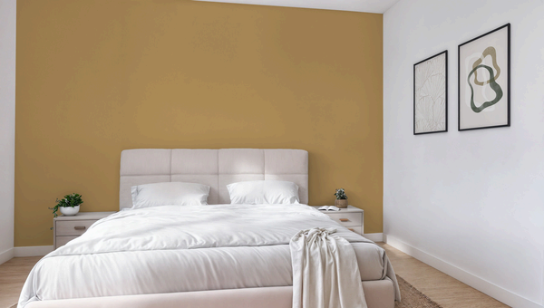 Tattle Tan je tmavá, tlumená, okrově žlutá s mechovým podtónem. Tato barva se skvěle hodí do ložnice. Kombinujte ji s tmavší hnědou nebo černou barvou.