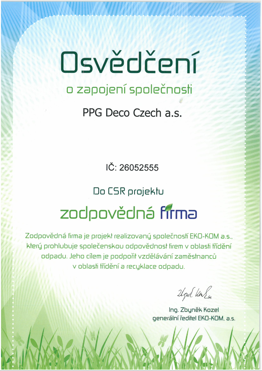 Společnost PPG Deco Czech a.s již odstranění těchto odpadů zaplatila při uvedení obalu na trh v rámci systému sdruženého plnění.