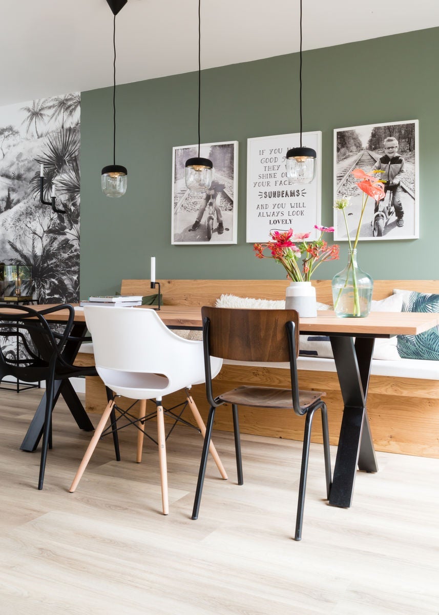 Green also pairs well with a wide range of colours, including its own shades. Combining deep bottle green with softer olive tones gives the interior depth and a rich, natural feel. Pairing green with white results in a light, airy space, while black or graphite adds a touch of elegance and sophistication. For an interior inspired by nature, green combined with brown is a timeless and grounding choice.