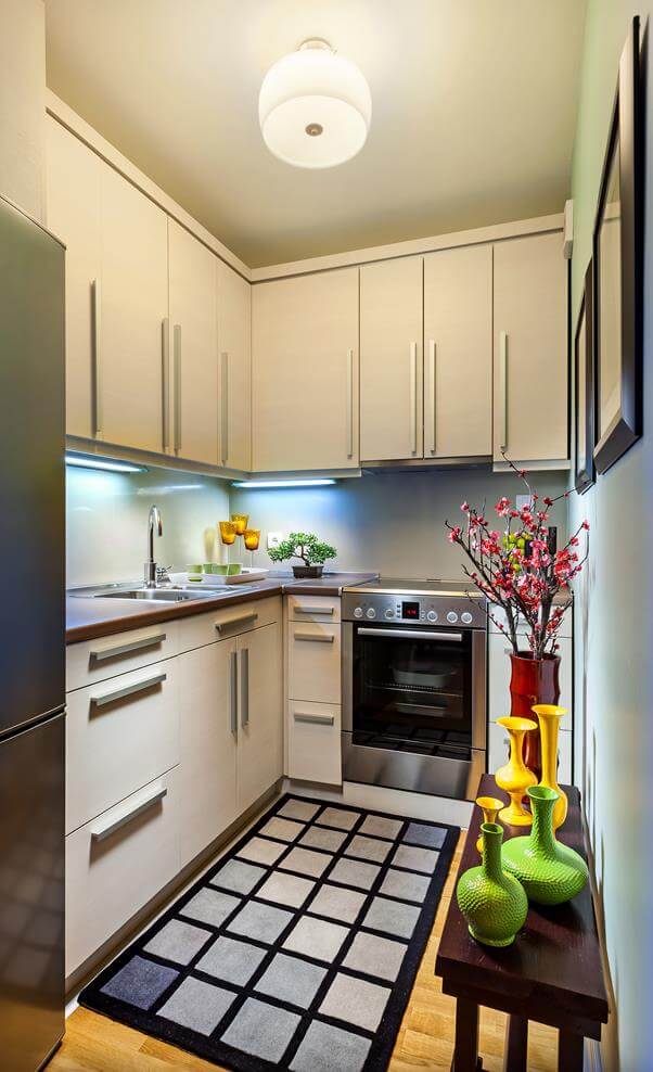 If you like silver or grey, these colours can harmonize perfectly with household appliances. If you want to choose bold colours, try to repeat the chosen colour or at least its shade in the kitchen accessories. There is one general rule: the wall colour should differ from the dominant colour of the kitchen furniture by at least a few tones. This helps avoid the impression that the interior is bland.