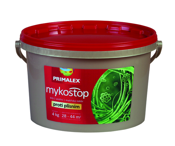 Primalex MYKOSTOP je speciální otěruvzdorný nátěr s velmi dobrou kryvostí, vysokou bělostí (min. 92% BaSO4) obsahující navíc účinné fungicidní látky, které likvidují plísně a současně mají i preventivní protiplísňový charakter.Vhodný do jakýchkoliv vnitřních vlhkých nebo špatně větratelných místností např. koupelny, WC, sklepy, chodby a jiné technické prostory, kde se plísně již vyskytly nebo jako prevence proti jejich vzniku. Finální vzhled je shodný s Primalexem POLAR, proto je možné nátěry při malování volně navazovat bez viditelného napojení.Doporučujeme aplikaci ve dvou vrstvách.