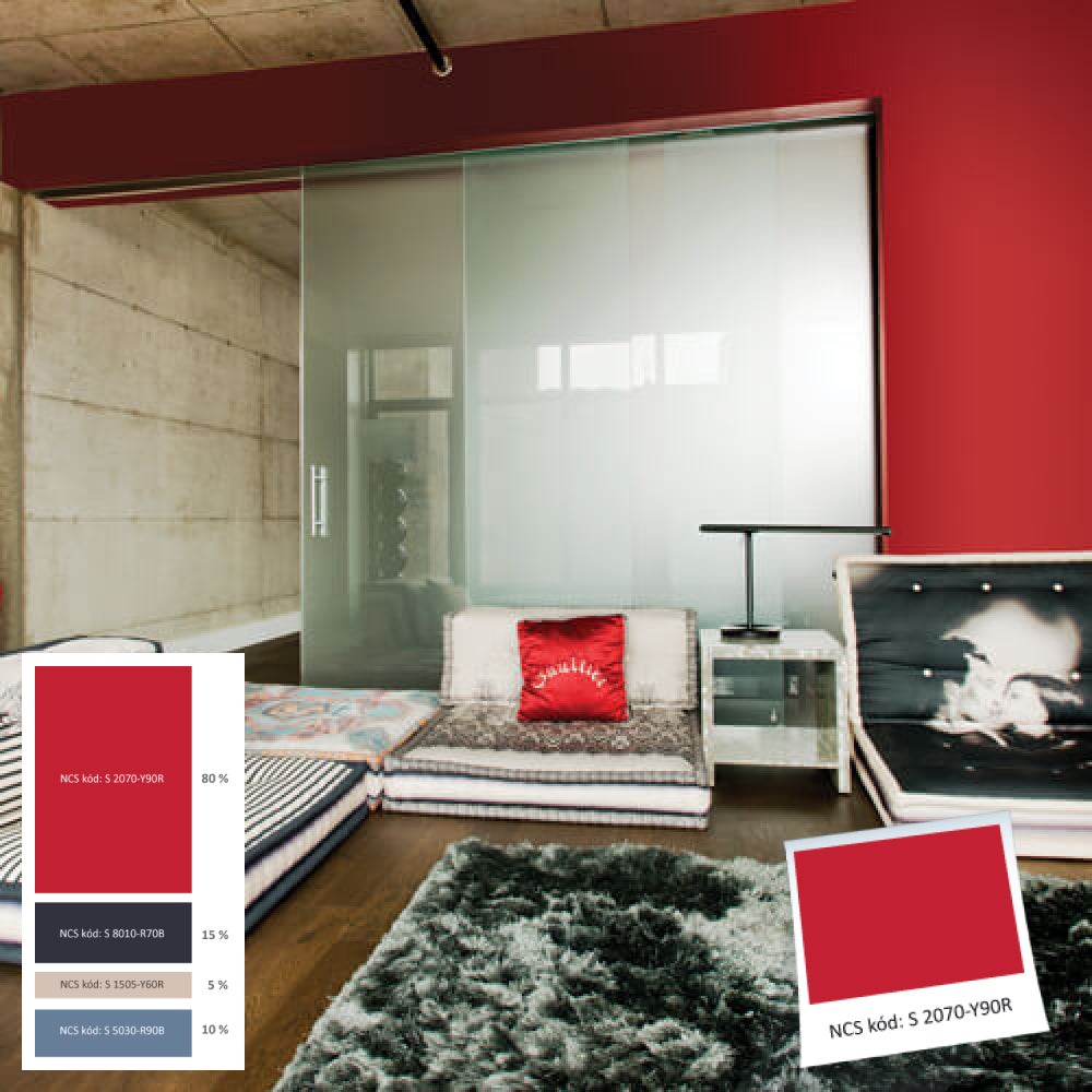 Táto kombinácia vám zaručene prospeje a zrýchli frekvenciu tepu. Je totižto dokázané, že červená má pozitívny vplyv na krvný obeh. Červená v tomto tmavom odtieni a v kombinácii s čiernou pôsobí v interiéri elegantne a trochu honosným dojmom.