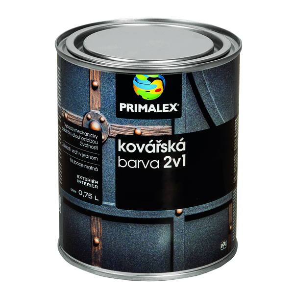Primalex Kováčska farba 2v1 je samozákladová syntetická alkyd-uretanová farba, postavená na tradičnej receptúre s obsahom železitej sľudy, grafitu a antikoróznych pigmentov. Chráni kov proti poveternostným vplyvom a vytvára účinnú bariéru proti vzniku korózii a prenikaniu vlhkosti. Vytvára efektný, hlboko matný a drsný povrch s jemnými metalickými odleskami, ktoré sú typické pre kované materiály.