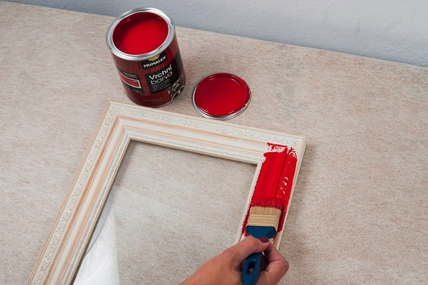 Natiahnite si rukavice a pomocou štetca natrite celý rám zvolenou farbou. Nevynechajte pritom žiadnu hranu. Aby vám rám vydržal dlhé roky, zvoľte farbu s výbornou odolnosťou proti poveternostným vplyvom, ktorou sa vyznačuje práve Primalex Vrchná farba.